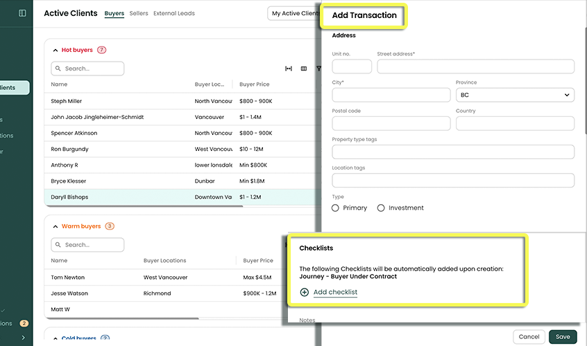 Congrats, your buyer has an accepted offer. You can now create a Transaction from this buyer "Active Client".