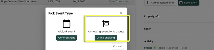 tip🚀 Although you can create a General Event that is linked to a Listing, we recommend using the dedicated Listing Showing option for showings - as we request Buyer Agent contact details.